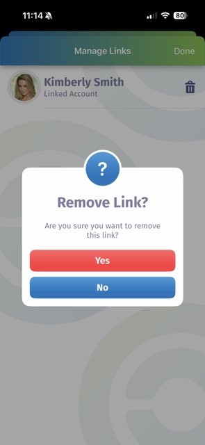 Note: Deleting an existing link will remove all access to that dependent by the target account.