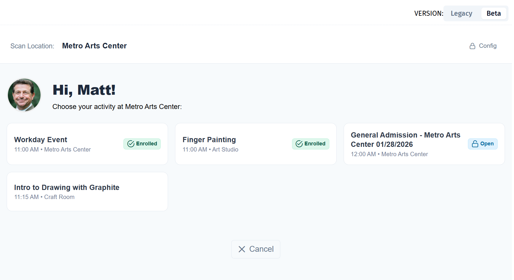 We are streamlining the entry process with a brand-new Beta Check-In interface. This redesigned screen focuses on speed and clarity, allowing staff to process arrivals more efficiently while providing a modern look and feel for high-traffic entry points.