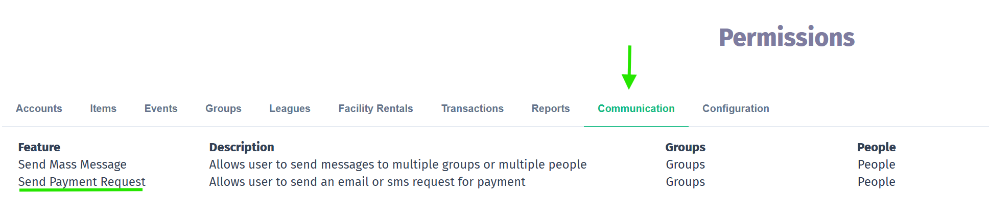 Sending a payment request is permission restricted. Users or groups must be assigned permission to send a payment request under:
